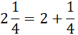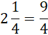 Mamy więc jedną część z czterech oraz dwie całości, czyli 8 części z 4. Razem masz 9 części z 4, czyli