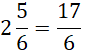 Mamy więc pięć części z sześciu oraz dwie całości, czyli 12 części z 6. Razem masz 17 części z 6, czyli