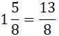 Mamy więc pięć część z ośmiu oraz jedną całość, czyli 8 części z 8. Razem masz 13 części z 8, czyli