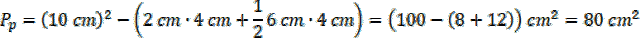 Natomiast pole podstawy Oblicz, odejmując od kwadratu o boku 10 cm pole prostokąta i trójkąta: