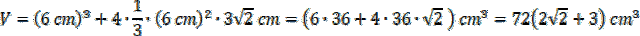 Oblicz objętość jako sumę objętości sześcianu i czterech ostrosłupów: