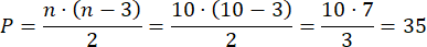 Aby policzyć liczbę przekątnych dziesięciokąta, wystarczy zastosować podany wzór i w miejsce niewiadomej podstawić liczbę 10.