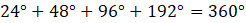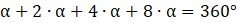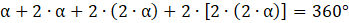 Suma wszystkich kątów w czworokącie jest równa 360°. Na tej podstawie zsumuj wszystkie kąty znajdujące się w czworokącie i oblicz miarę każdego z nich.