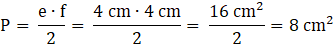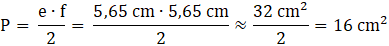 Pole rombu to iloczyn długości przekątnych podzielony przez 2.