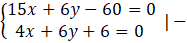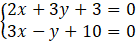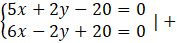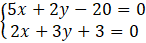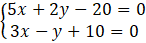 Punkt wspólny prostych 5x + 2y - 20 = 0 i 3x – y + 10 = 0: