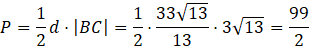 Wyznacz wierzchołki tego trójkąta, a następnie oblicz długość jednego z jego boków (BC. oraz odległość trzeciego wierzchołka od prostej przeciwległej, która jest wysokością opuszczoną na wskazany bok. W kolejnym kroku oblicz pole figury.