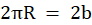 Wiedząc, że obwód jest równy 2b oblicz długość promienia 2R.