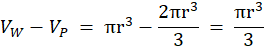 Oznacz jako r promień półkola, zauważ, że jest to zarazem wysokość walca oraz wysokość stożka. Wyznacz objętość walca o promieniu podstawy r i wysokości r. Kolejno również korzystając ze wzoru oblicz objętości półkuli oraz stożka. Oblicz różnicę pól walca i półkuli z różnicą objętości półkuli i stożka. Zapisz wnioski.
