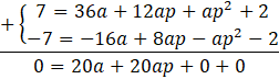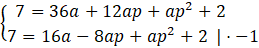Ale ponieważ funkcja jest kwadratowa to a nie może wynosić 0. Więc jedyną możliwością jest to, że p = -1. Mając już p możesz podstawić je do któregoś ze wzorów w układzie równań wyżej.