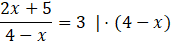 Z kolei w drugim równaniu masz pewien ułamek przyrównany do liczby. Oczywiście także musisz policzyć dziedzinę. Gdy już to zrobisz możesz przemnożyć obie strony przez mianownik, aby pozbyć się ułamka. Otrzymasz wtedy zwykłe równanie z x, które musisz rozwiązać.
