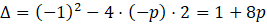 To równanie (a co za tym idzie cały układ równań) ma dwa rozwiązania tylko wtedy, gdy Δ > 0.