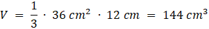 Objętość ostrosłupa to iloczyn pola powierzchni tego ostrosłupa przez jego wysokość, pomniejszony 3 razy: