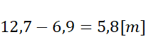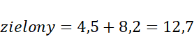 Zielony odciek jest o 5,8m dłuższy niż niebieski.