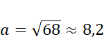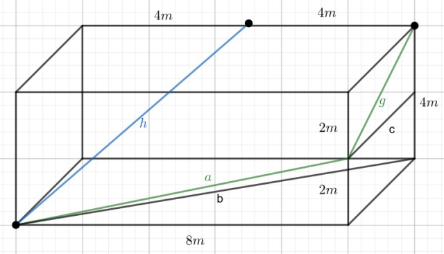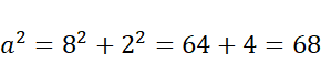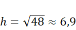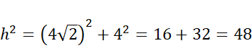 Długość odcinka a i b oblicz z twierdzenia Pitagorasa dla odpowiednich trójkątów. Długość odcinka h również oblicz z twierdzenia Pitagorasa, zauważając wcześniej, że długość jednej przyprostokątnej tego trójkąta prostokątnego to długość przekątnej kwadratu o boku długości 4.