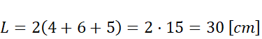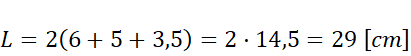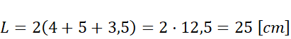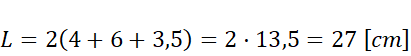 Rozważ wszystkie cztery przypadki, w zależności od obranego boku figury. W każdym z nich oblicz podwojoną sumę pozostałych trzech boków. Gdy wynik będzie równy 27, to znajdziesz szukany odcinek.