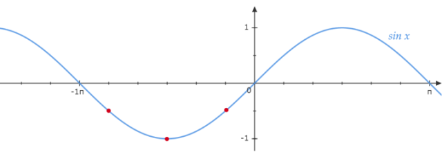 Narysuj wykres funkcji sinus i zaznacz na nim powyższe rozwiązania w przedziale
