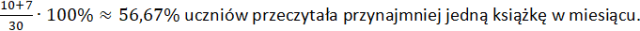 · 56,67% uczniów przeczytała przynajmniej jedną książkę w miesiącu.