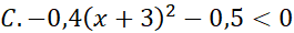 C. -0,4(x + 3)2 – 0,5 < 0