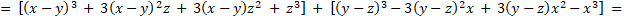 Wyrażenie upraszczamy stosując WSM: (a – b)3 = a3 – 3a2b + 3ab2 – b3 i (a + b)3 = a3 + 3a2b + 3ab2 + b3.