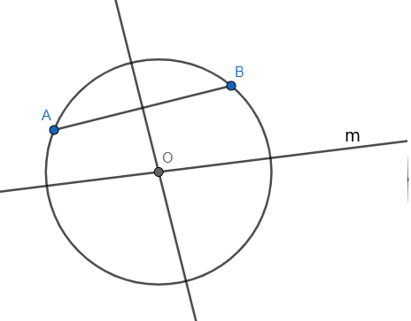 Na rysunku obok pokazane są dwa wierzchołki trójkąta ABC oraz prosta m przechodząca przez środek opisanego na nim okręgu. Ile jest różnych trójkątów spełniających warunki zadania?