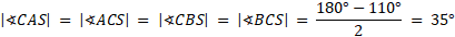 Zauważ, że trójkąty ASB, ASC i BSC są równoramienne. Wynika z tego, że trójkąty ASC i BSC są przystające, więc mają jednakowe miary katów.