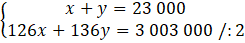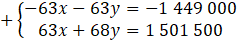 -63x – 63y + 63x + 68y = -1 449 000 + 1 501 500