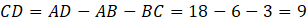 Wiedząc, że bok AB = 6, BC = 3, a bok AD = 18, można stwierdzić, że bok