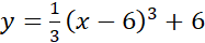 Wykres m został przesunięty o 6 jednostek w prawo i 6 jednostek w dół:
