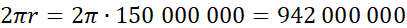 Przyjmij, że odległość Ziemi od środka słońca to r = 150 mln km. Wzór na długość okręgu to