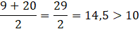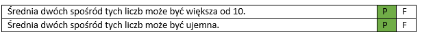 | Średnia dwóch spośród tych liczb może być większa od 10. | P | F |