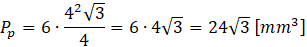 . Pole podstawy oblicz jako pole sześciu trójkątów równobocznych o krawędzi 4 mm.