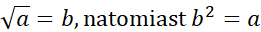 Pierwiastek kwadratowy to taka liczba większa od zera, która po podniesieniu do kwadratu da nam liczbę podpierwiastkową: