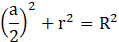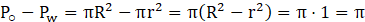 Korzystamy z twierdzenia Pitagorasa, aby wyznaczyć różnicę kwadratów promieni. Przemnażamy wynik tej różnicy, z podstawioną długością boku 2 cm, przez