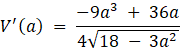 W otoczeniu punktu a = 2 pochodna dla argumentów mniejszych przyjmuje wartości dodatnie, dla argumentów większych – ujemne. Zatem funkcja V osiąga w tym punkcie maksimum, które wynosi: