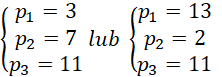 W tym zadaniu należy wyznaczyć trzy liczby pierwsze o zadanej własności.