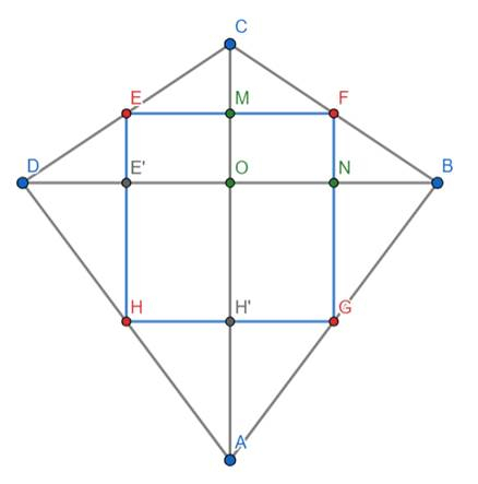 Punkty E, F, G, H są środkami boków CD, BC, AB i DA. Wystarczy, że pokażesz:
