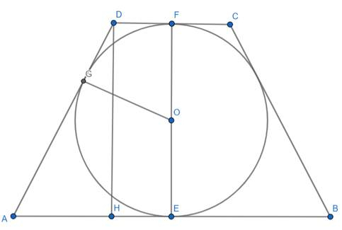 Promień wpisanego okręgu to połowa wysokości trapezu: