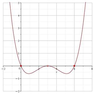 Aby określić znak tej pochodnej, narysuj wykres poglądowy funkcji: