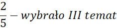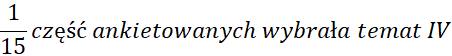 Policz części uczniów, którzy wybrali pierwszy, drugi i trzeci temat. Od całości odejmij ten wynik. Potem porównaj ułamki.