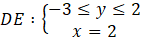 Współrzędna x punktów należących do odcinka DE jest zawsze równa 2, a współrzędna y jest w przedziale od -3 do 2.