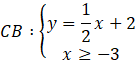 Współrzędna x punktów należących do półprostej CB są większe bądź równe -3, a współrzędna y jest wyznaczana przez równanie