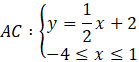 Współrzędna x punktów należących do odcinka AC należy do przedziału od -4 do 1, a współrzędna y jest wyznaczana przez równanie