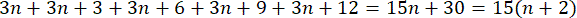 Udowodnij, że sumę pięciu kolejnych liczb naturalnych podzielnych przez 3 da się podzielić przez 15.
