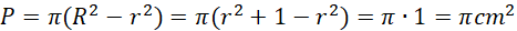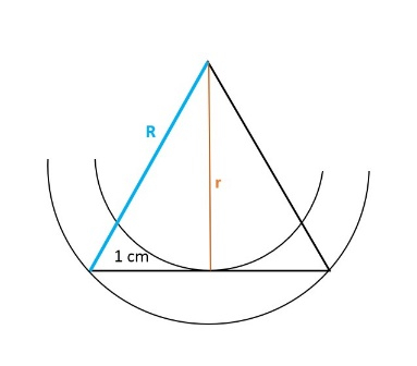 n-kąt foremny składa się z trójkątów równoramiennych. Różnica między polem koła opisanego na tym wielokącie, a polem koła wpisanego w ten wynosi: