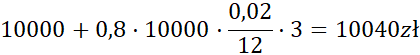 W tym zadaniu określ, w którym banku lokata była korzystniejsza i o ile złotych, wiedząc, że klient wpłacił do banku 10 000 zł na 6-miesięczną lokatę odnawialną oprocentowaną 2% w stosunku rocznym. Taką samą kwotę wpłacił w drugim banku na 3-miesięczną lokatę odnawialną o takim samym oprocentowaniu rocznym. Obie lokaty zlikwidował po 1,5 roku. W obliczeniach uwzględnij podatek od odsetek w wysokości 20%.