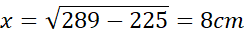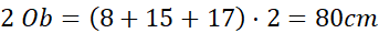 W tym zadaniu musisz obliczyć podwojony obwód trójkąta prostokątnego, którego jedna z przyprostokątnych ma długość 1,5 dm, a przeciwprostokątna – o 2 cm dłuższa.
