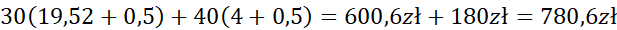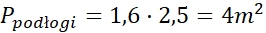 W tym zadaniu musisz obliczyć koszt terakoty (40 zł za 1 m2) i płytek (30 zł za 1 m2) do łazienki w kształcie prostopadłościanu o podstawie w wymiarach 1,6 m x 2,5 m oraz wysokości 2,6 m. W łazience znajdują się drzwi o wymiarach 90 cm x 2 m. Na ścianach położono płytki, a na podłodze terakotę, każdego z zakupionych materiałów zakupiono o 0,5 m2 więcej.