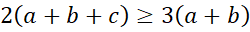 Liczba c jest większa od liczb a i b, więc jej dwukrotność jest większa od sumy liczb a i b.