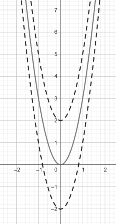 ma jedno miejsce zerowe. Jeśli przesunie się ją w górę, to nie będzie miała żadnego miejsca zerowego, a jeśli w dół, to będzie miała dwa miejsca zerowe.