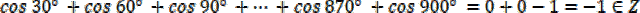 ). Również korzystając z wzorów redukcyjnych wyznacz wartość cosinusów dla kolejnych kątów. Dodaj do siebie wszystkie wyznaczone wartości. Otrzymana suma jest równa -1, a więc należy do liczb całkowitych.